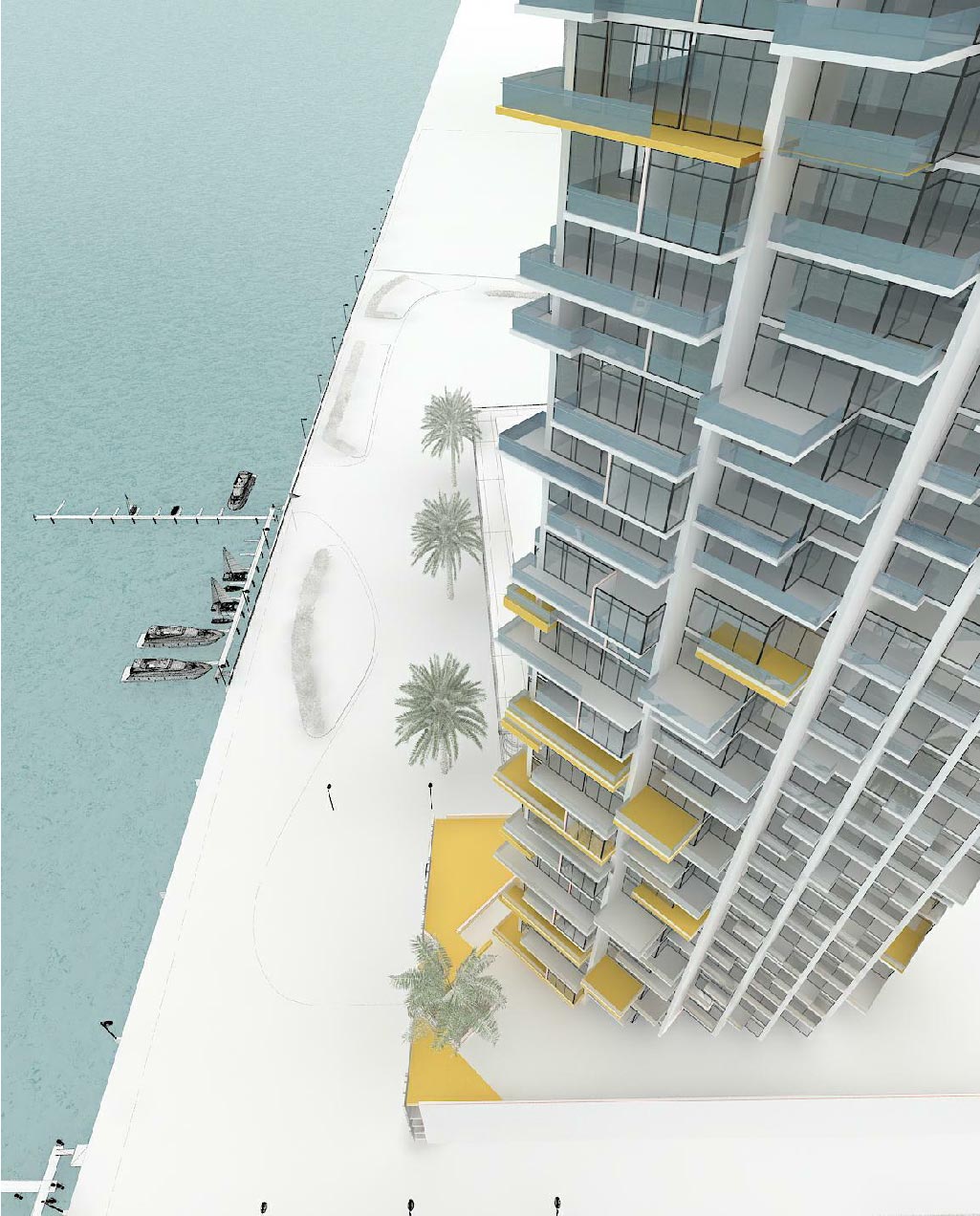This tower (G+4P+40) project, located on a remarkable address at Dubai Maritime City, has 40 floors with 145 apartments, classified as studios, 1-, 2-, 3- and 4 bedrooms apartments. The high upper floors are designed as penthouses with an internal connected staircase. The project showcases consideration for the sustainability & green building regulations, by providing green terraces and roof gardens, as well as proportioned building opening sizes.